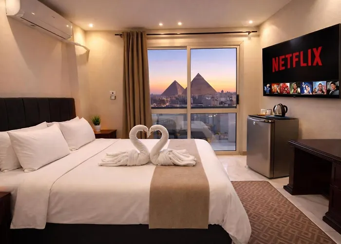 يقع Sun Roof Pyramids View Inn Jacuzzi Stay & Tours Cairo في منطقة الجيزة، على مسافة 3.1 كم من المتحف المصري الكبير، ويضمّ الحوض الساخن والشاشة المسطحة مع القنوات الفضائية. توجد خدمة الواي فاي في جميع أنحاء الملكية وهي متاحة في جميع الأوقات